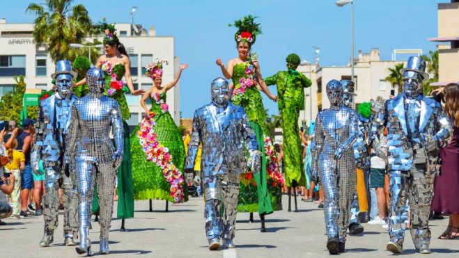 - Desfilada: més de 60 grups de diverses nacionalitats, bandes de música, gaiters, xanquers, ballarins en trages enlluernadors i carrosses creades per negocis locals.