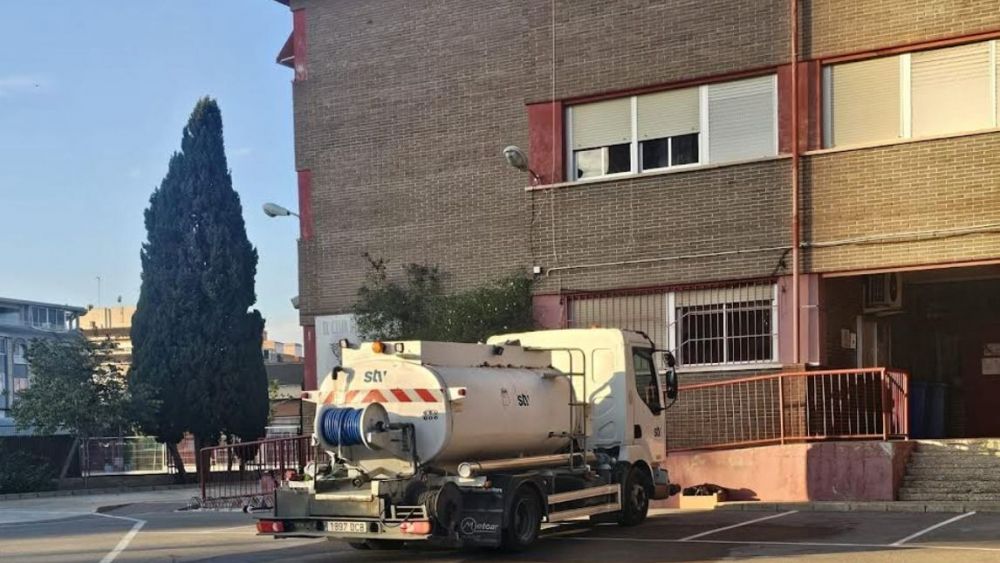 Un camión cisterna durante la reparación de una tubería en un colegio de Alicante