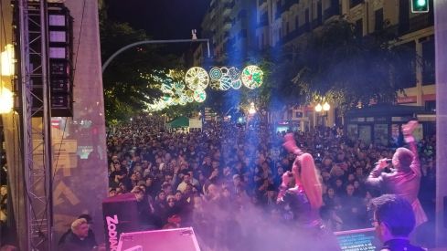 La gran mayoría, después de recibir a 2026 en la Plaza del Ayuntamiento, ha regresado a la Rambla. Allí han vuelto a sumarse a los miles de personas que han escuchado las campanadas desde la megafonía instalada en el escenario. El conjunto de los asistentes se ha sumado, a continuación, a la verbena que han protagonizado los 11 componentes de la orquesta Athenas. Sus temas, incluyendo los éxitos de siempre, han contado con el respaldo de 30.000 vatios de sonido, 40.000 de una iluminación espectacular, y el soporte visual de una pantalla LED.